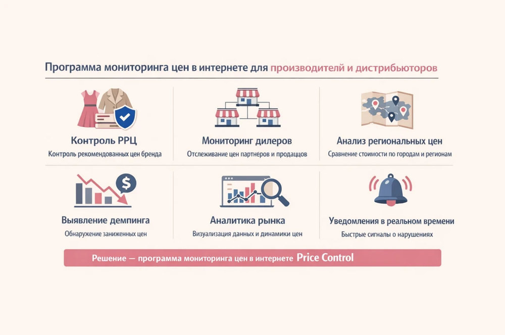 Одним из таких решений является программа мониторинга цен в интернете Price Control. Она помогает брендам: