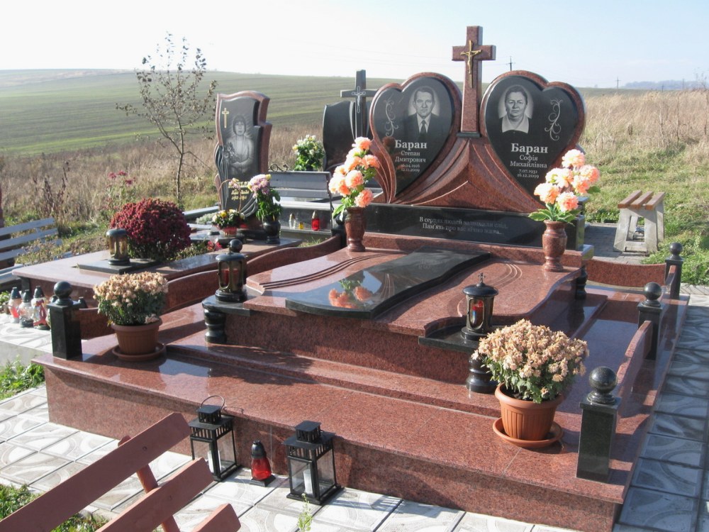 Позолочені опції та декоративні вставки не перевершують природну красу каменю. Він дозволяє виточувати точні форми та наносити гравіювання високої чіткості. Гранітні пам’ятники подвійні відрізняються не лише довговічністю. Вони відомі презентабельним зовнішнім виглядом, який легко поєднується з будь-яким ландшафтом цвинтаря. Міцність матеріалу дозволяє виготовляти комплексні меморіальні композиції з: